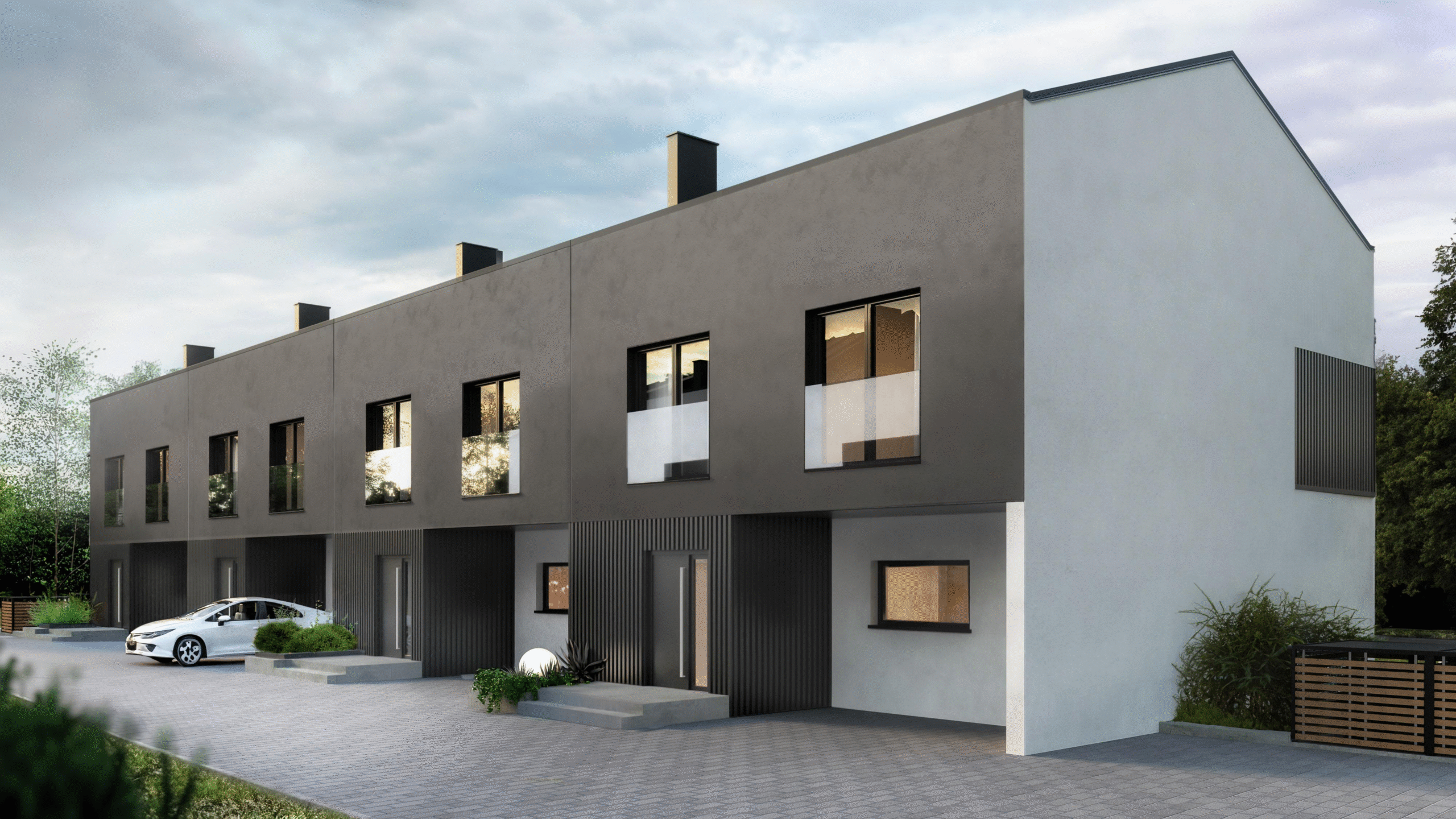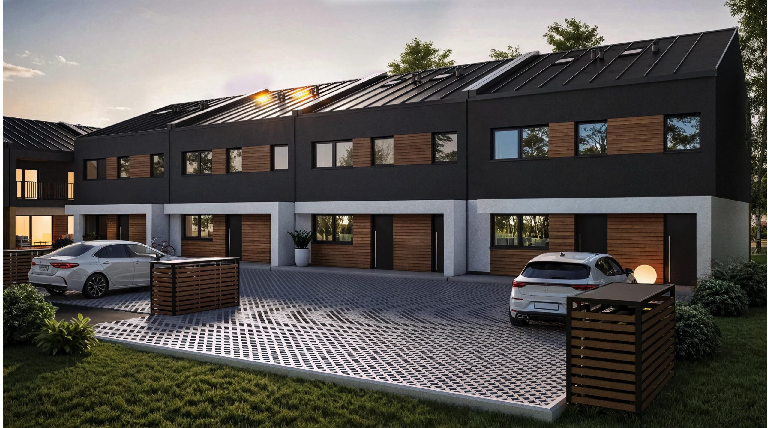 Każdy dom posiada dwa prywatne miejsca postojowe w cenie – wygoda bez kompromisów.